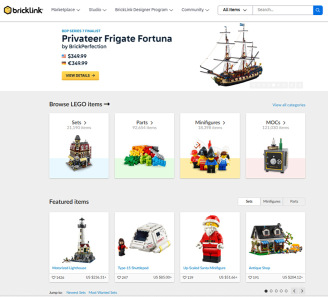 Another part of the Lego ecosystem is BrickLink. It’s the world’s largest online marketplace where you can buy and sell new and used LEGO parts, sets, and minifigures. BrickLink helps connect Lego fans with developers by letting them find parts, design digitally, and build physical models using its marketplace, Stud.io software, and Designer Program. With millions of parts from over 10,000 sellers, it gives adult fans of Lego (AFOLs) the exact pieces they need for custom models, and Stud.io lets them create precise prototypes, parts lists, and instructions.
